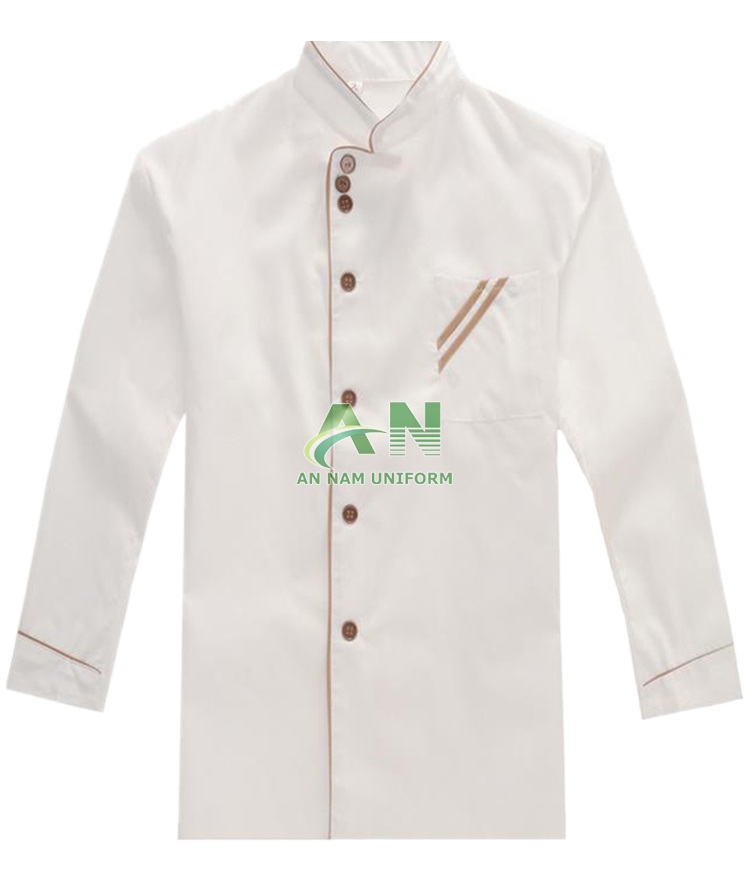 - Hình thức: bộ đồng phục bếp, phối áo, phối viền, nhiều mẫu.
