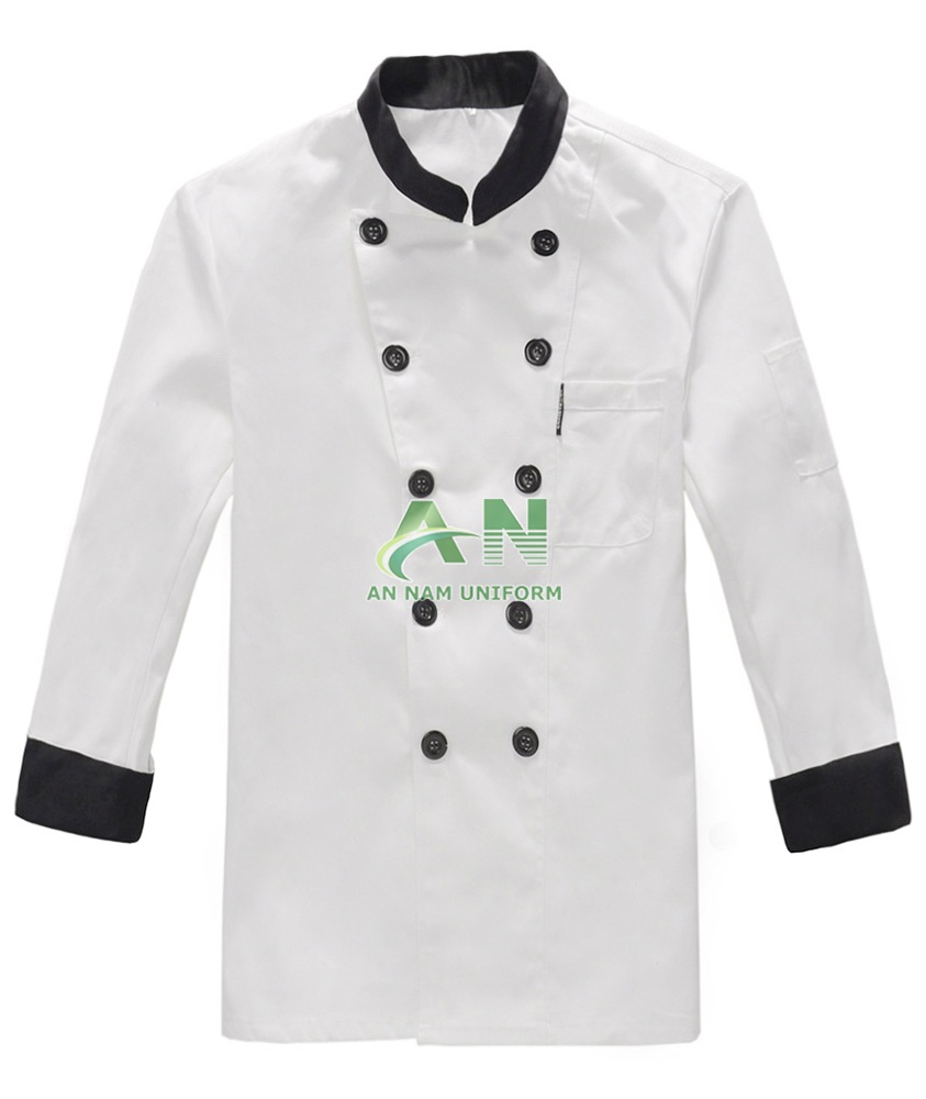 - Hình thức: bộ đồng phục bếp, phối áo, phối viền, nhiều mẫu.