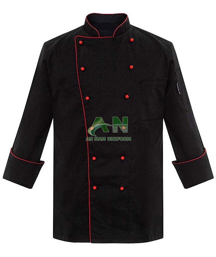 - Hình thức: bộ đồng phục bếp, phối áo, phối viền, nhiều mẫu.