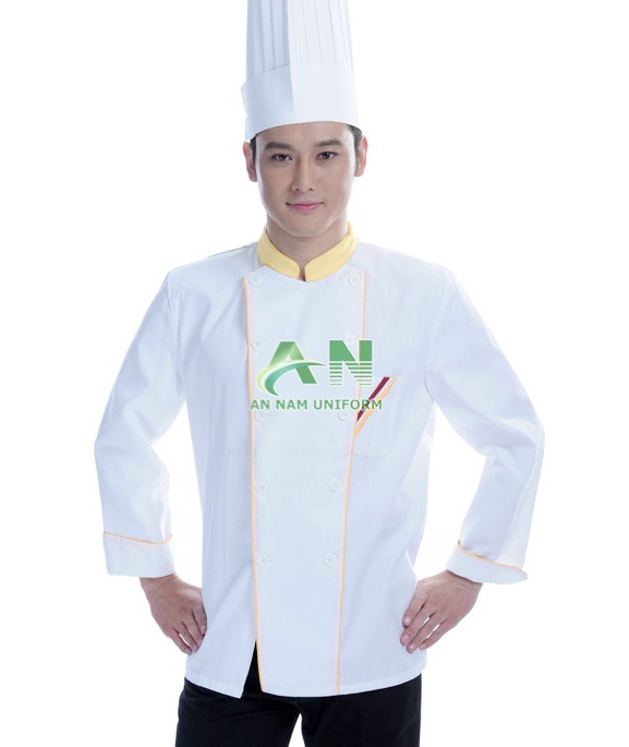 - Hình thức: bộ đồng phục bếp, phối áo, phối viền, nhiều mẫu.