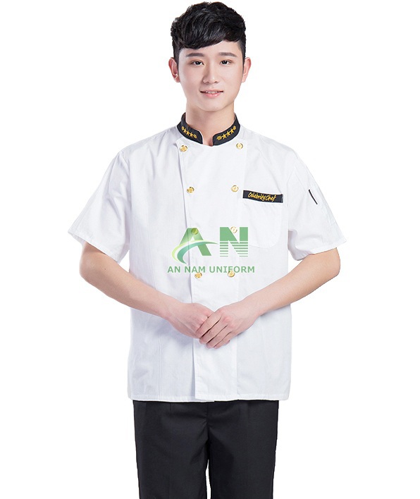 - Hình thức: bộ đồng phục bếp, phối áo, phối viền, nhiều mẫu.