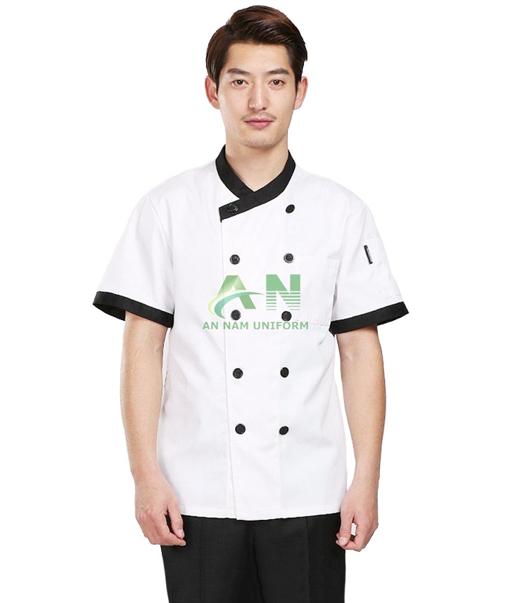 - Hình thức: bộ đồng phục bếp, phối áo, phối viền, nhiều mẫu.