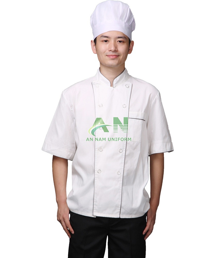 - Hình thức: bộ đồng phục bếp, phối áo, phối viền, nhiều mẫu.