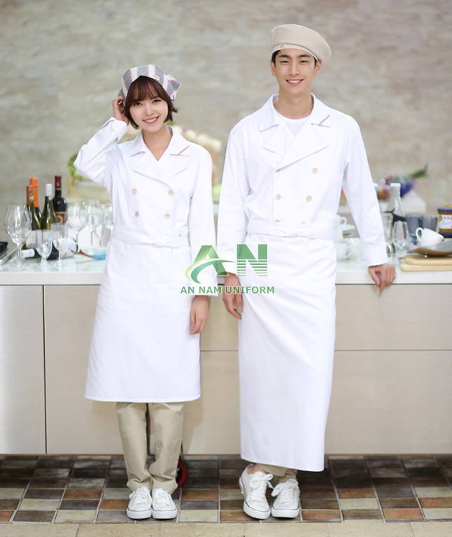 - Hình thức: bộ đồng phục bếp, phối áo, phối viền, nhiều mẫu.