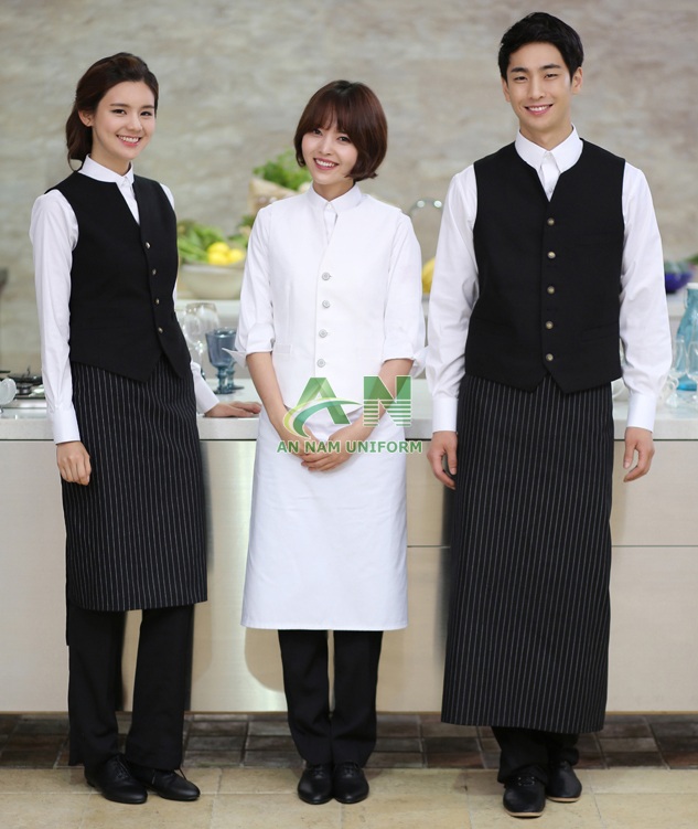 - Hình thức: bộ đồng phục nhà hàng, phối áo, phối viền, nhiều mẫu.