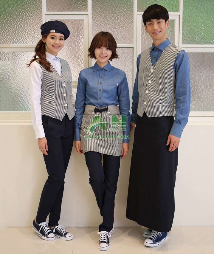 - Hình thức: bộ đồng phục nhà hàng, phối áo, phối viền, nhiều mẫu.