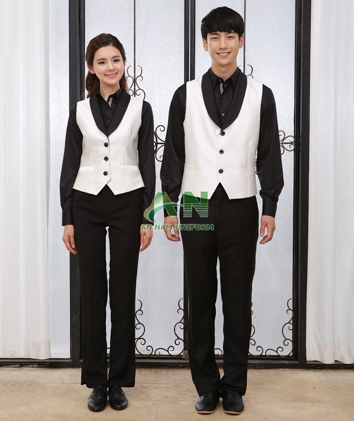 - Hình thức: bộ đồng phục nhà hàng, phối áo, phối viền, nhiều mẫu.