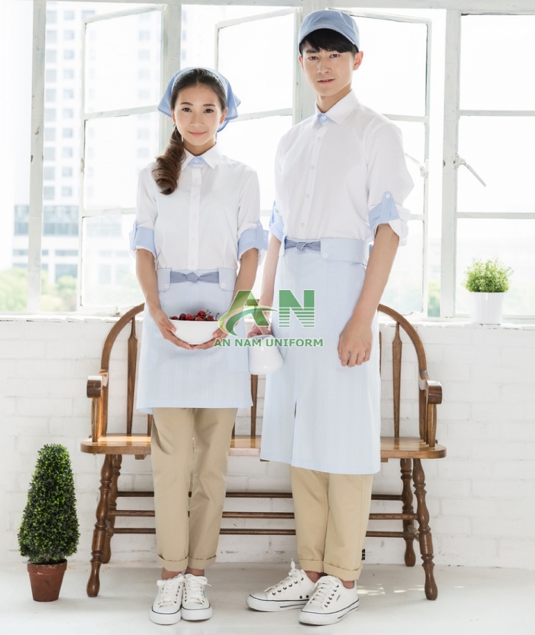 - Hình thức: bộ đồng phục nhà hàng, phối áo, phối viền, nhiều mẫu.