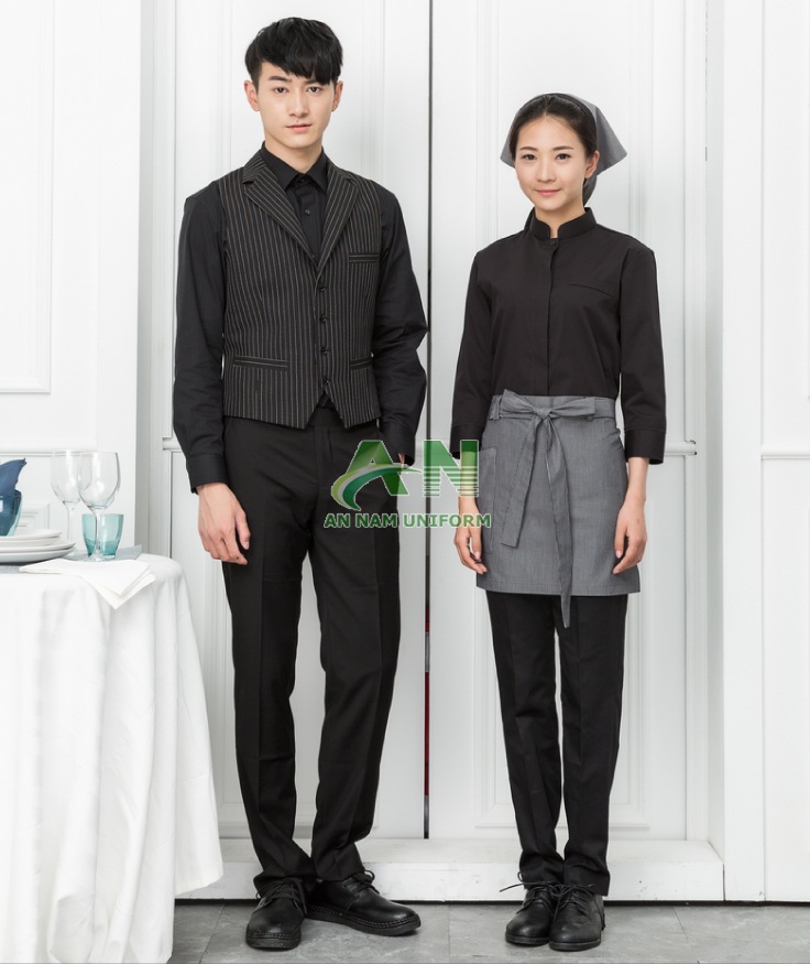 - Hình thức: bộ đồng phục nhà hàng, phối áo, phối viền, nhiều mẫu.