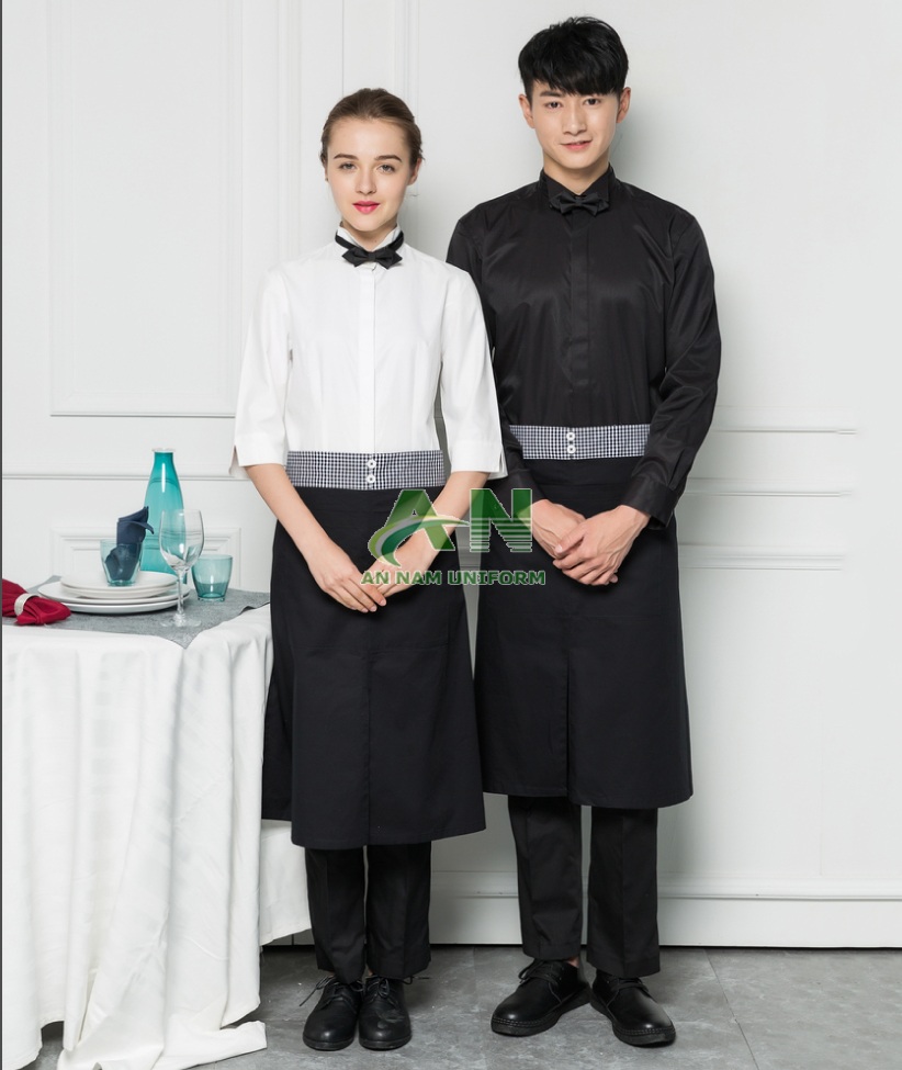 - Hình thức: bộ đồng phục nhà hàng, phối áo, phối viền, nhiều mẫu.