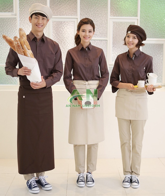 - Hình thức: bộ đồng phục nhà hàng, phối áo, phối viền, nhiều mẫu.