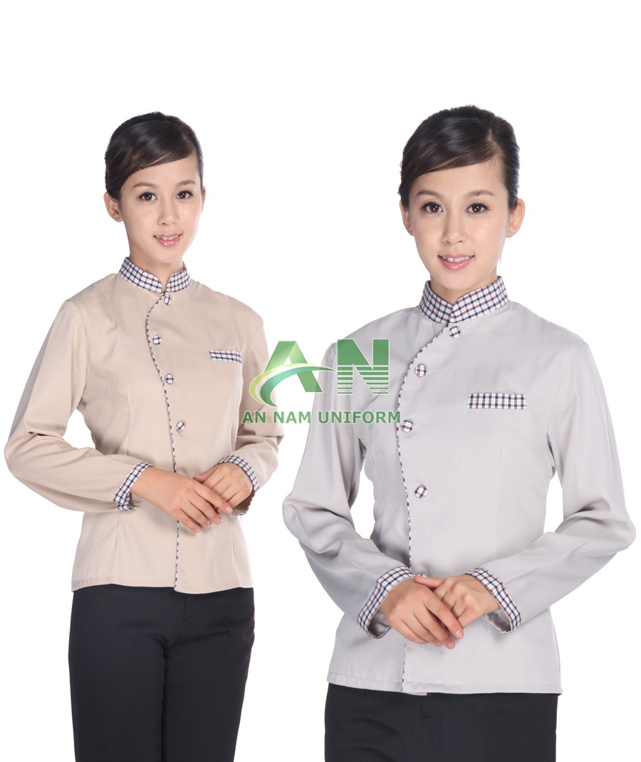 - Hình thức: bộ đồng phục phục vụ, phối áo, phối viền, nhiều mẫu.