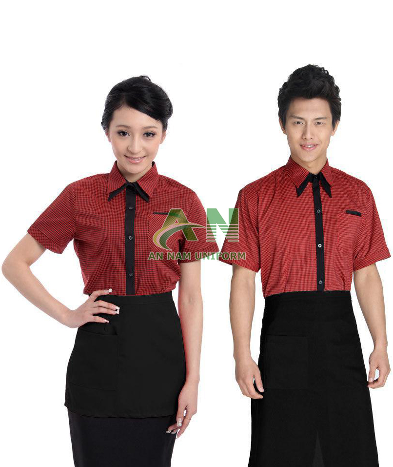 - Hình thức: bộ đồng phục phục vụ, phối áo, phối viền, nhiều mẫu.